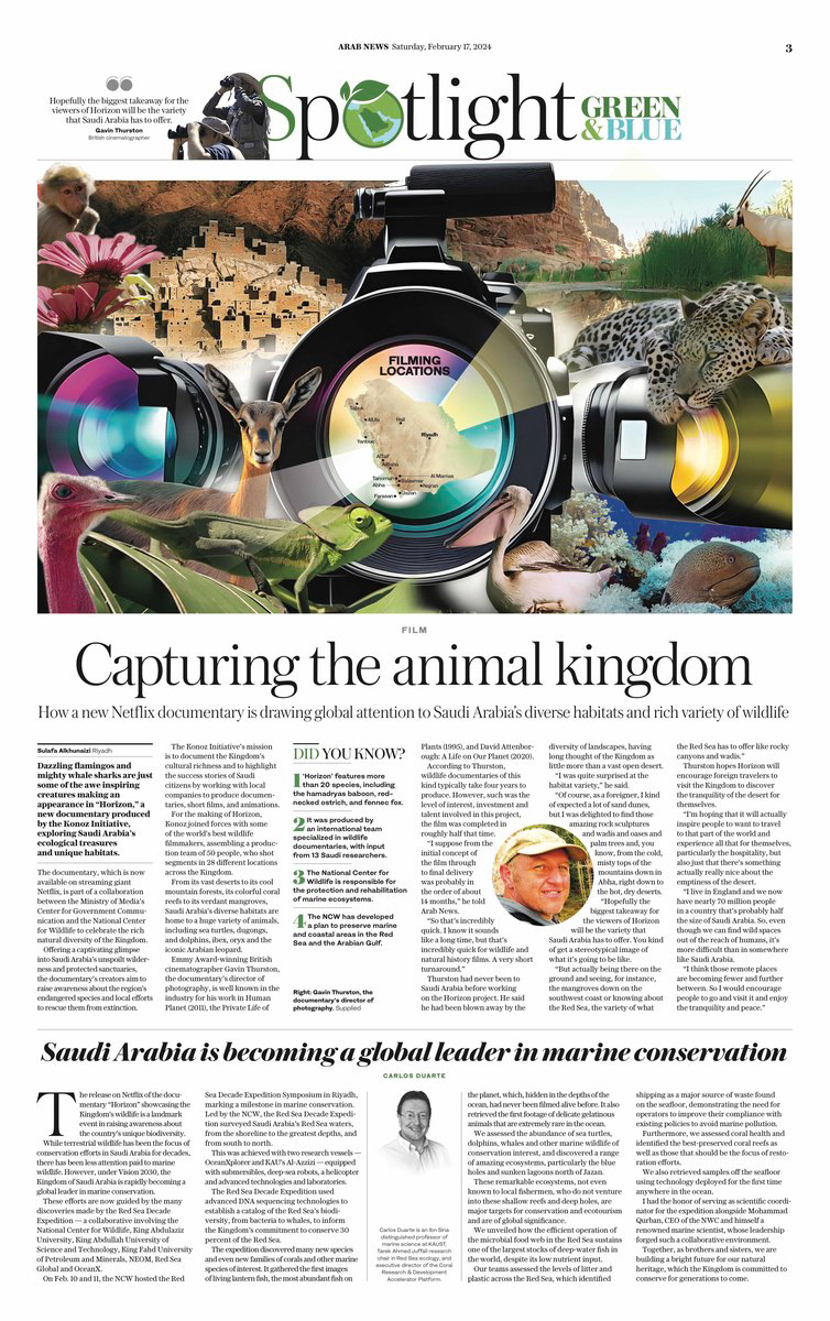 The new documentary, produced by the Konoz Initiative, is part of a collaboration between the Saudi Ministry of Media’s Center for Government Communication and the National Center for Wildlife. It explores the ecological treasures and unique habitats of the Kingdom.